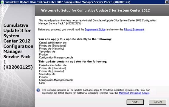 Foi lançado o CU3 do System Center Configuration Manager 2012 SP1, esse vai ser um dos pré requisitos para a instalação do System Center Configuration Manager 2012 R2, que será lançado no dia 18/10/2013, por tanto, quem pretende fazer o upgrade para nova versão deve ficar atendo aos passos de instalação.