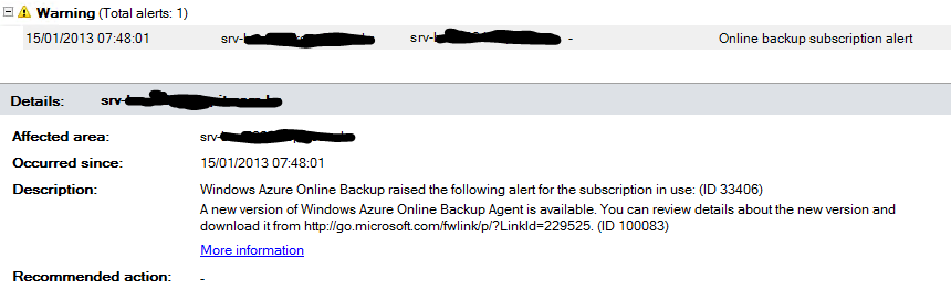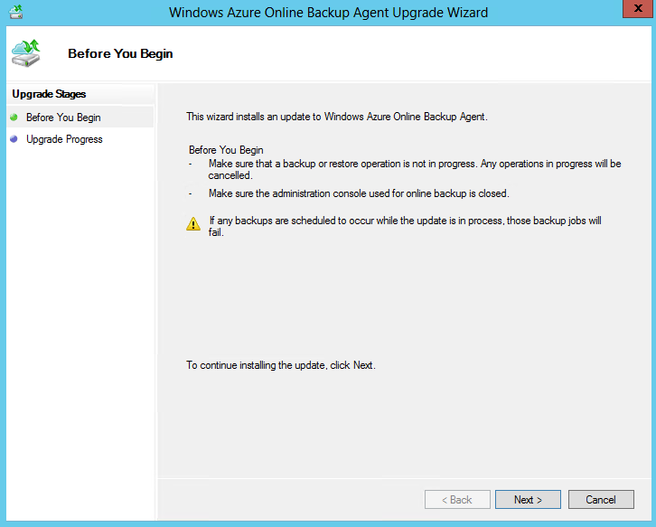 An update to the Windows Azure Online Backup Preview service is scheduled for March 11, 2013. To continue to use the backup service after the update, you must install the latest version of the backup agent software.