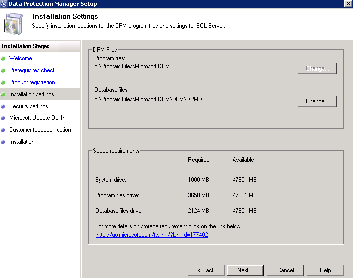 • Verificar que o disco onde o DPM está instalado tenha pelo menos 5GB livre.